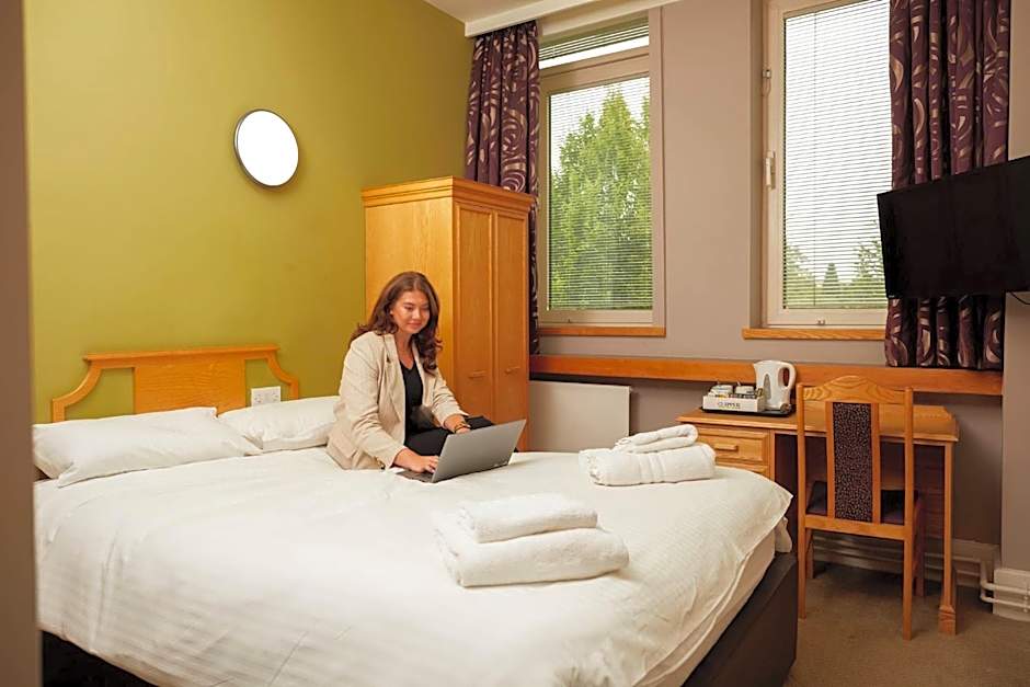 Travelers can mix business with pleasure thanks to an indoor pool that’s open year-round, a sauna, and a free fitness center, plus terrace and garden spaces for a breezy break between meetings. The Food Hub offers modern British dining, and the on-site bar is a handy spot for winding down. For seminars and conferences, a business center and meeting/banquet facilities are available for an extra charge.